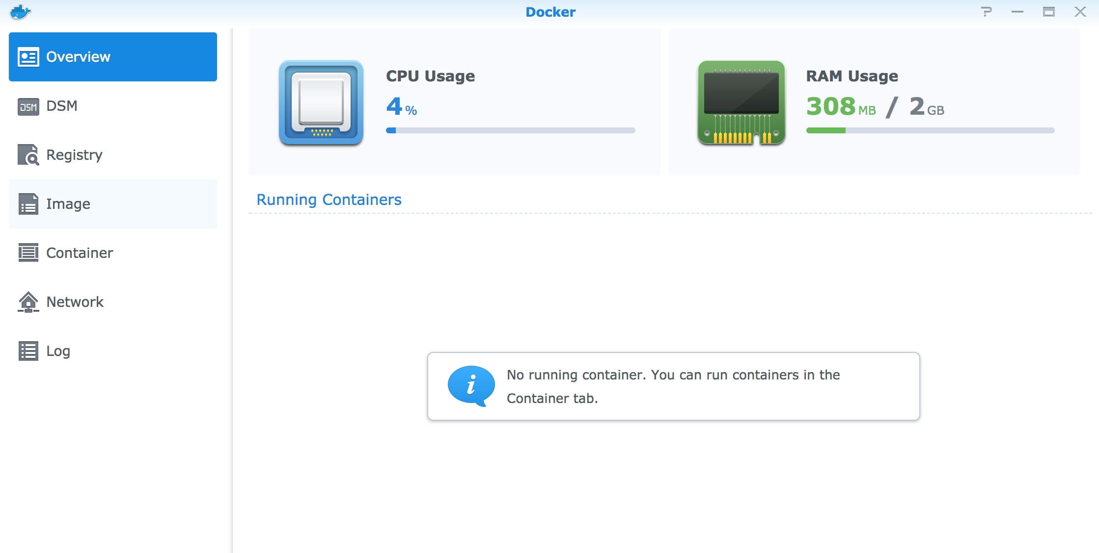 "Package Center" => "Utilities" => "Docker"でInstallボタンをクリック。