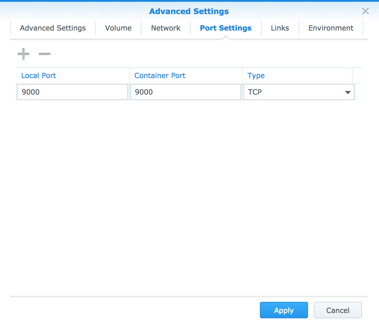 "Port Settings"タブをクリックし、"Local Port"に9000を入力。