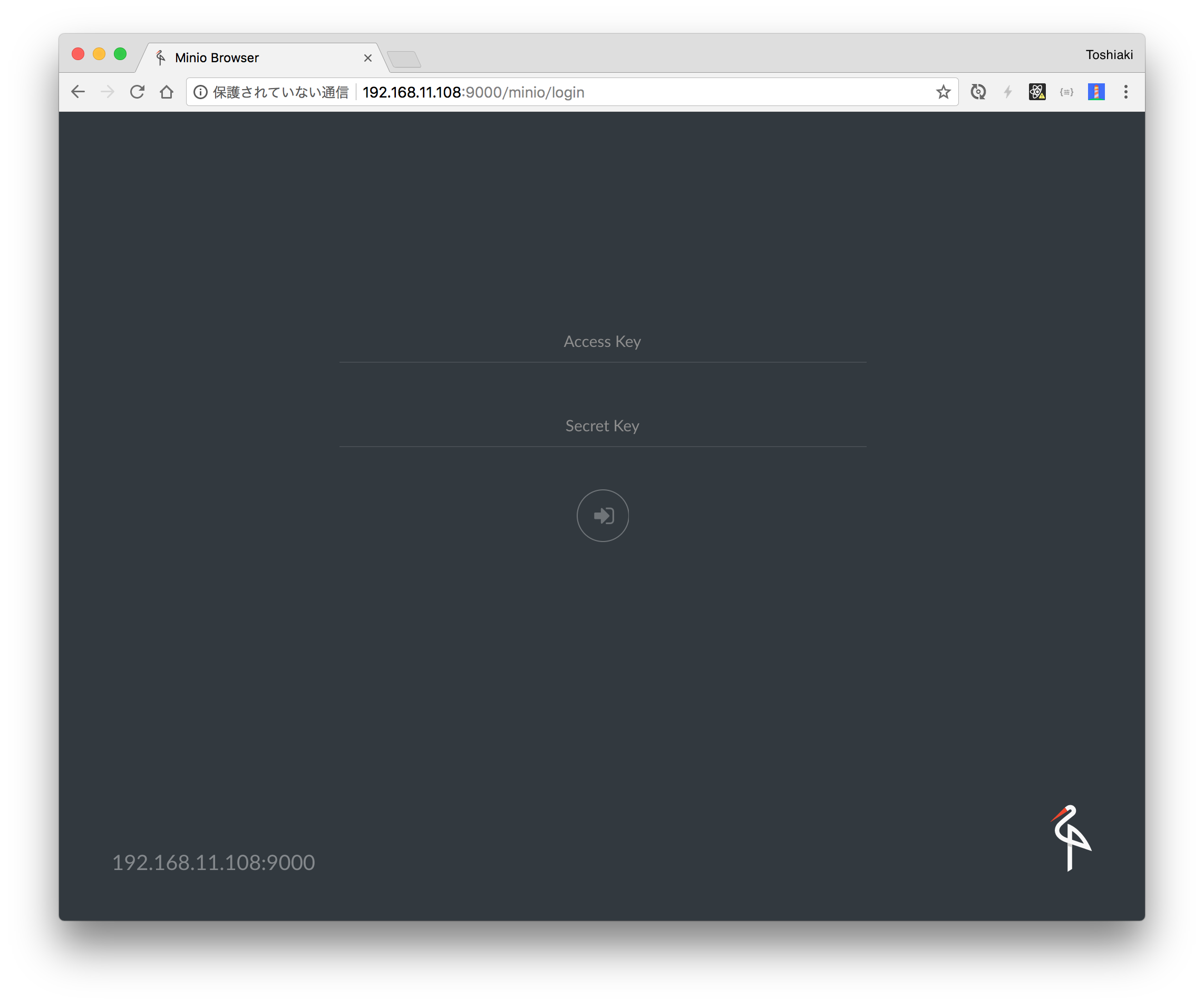 http://<Synology NASのIP>:9000にアクセスすると、UI(Minio Browser)が表示される。