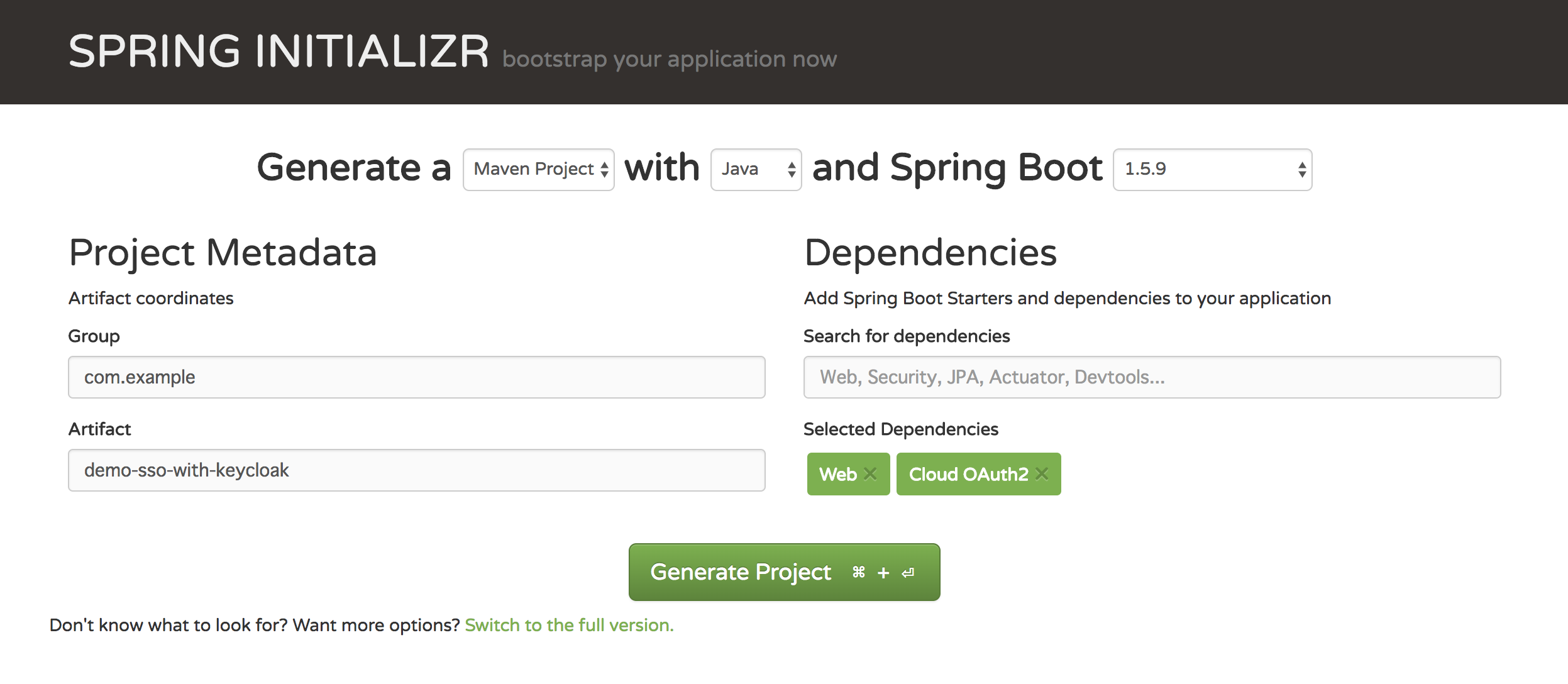 Spring InitializrでDependenciesに"Web"と"Cloud OAuth2"を選択します。