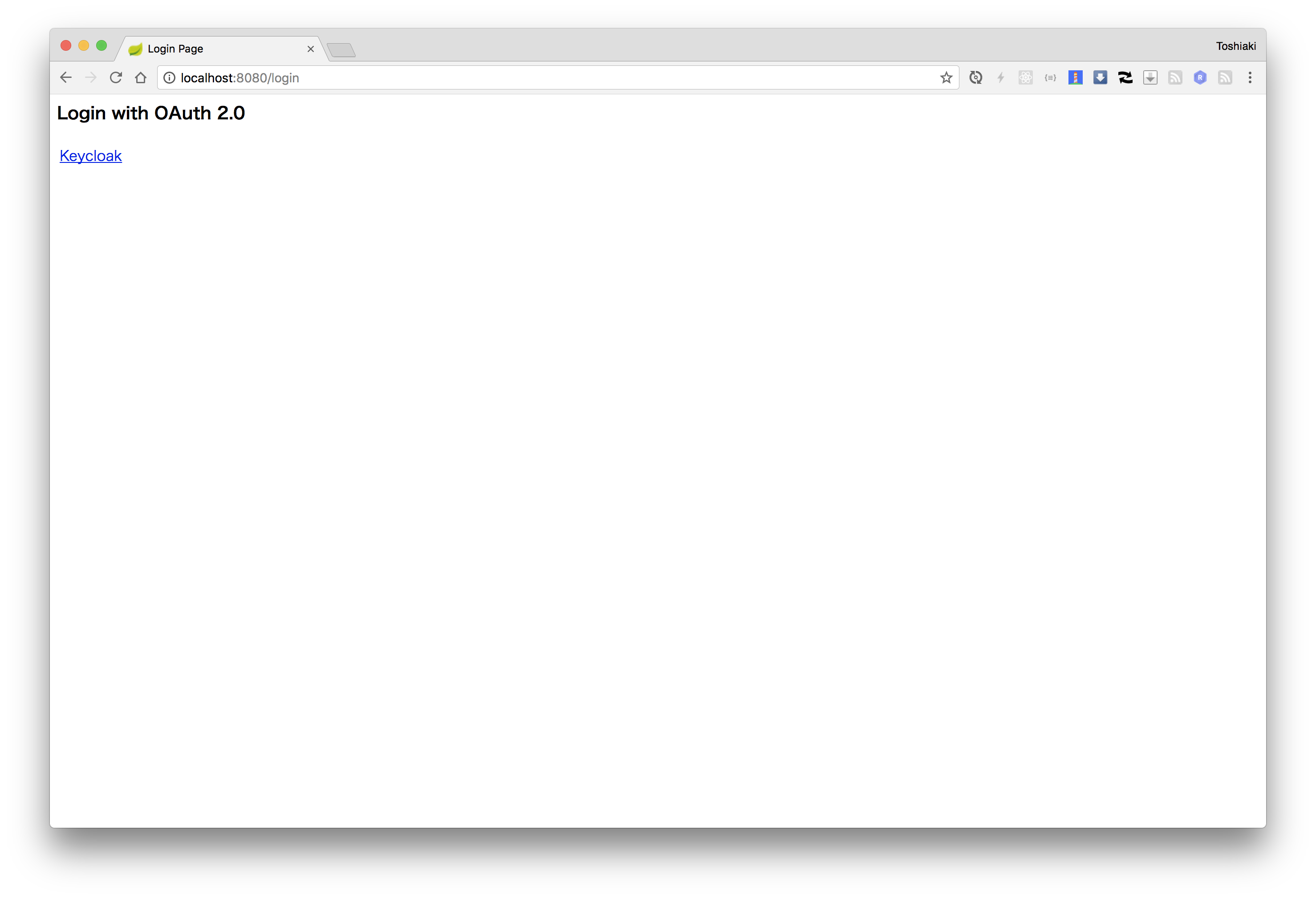 mainメソッドを実行して、http://localhost:8080にアクセスすると、Keycloakのログイン画面にリダイレクトされます。