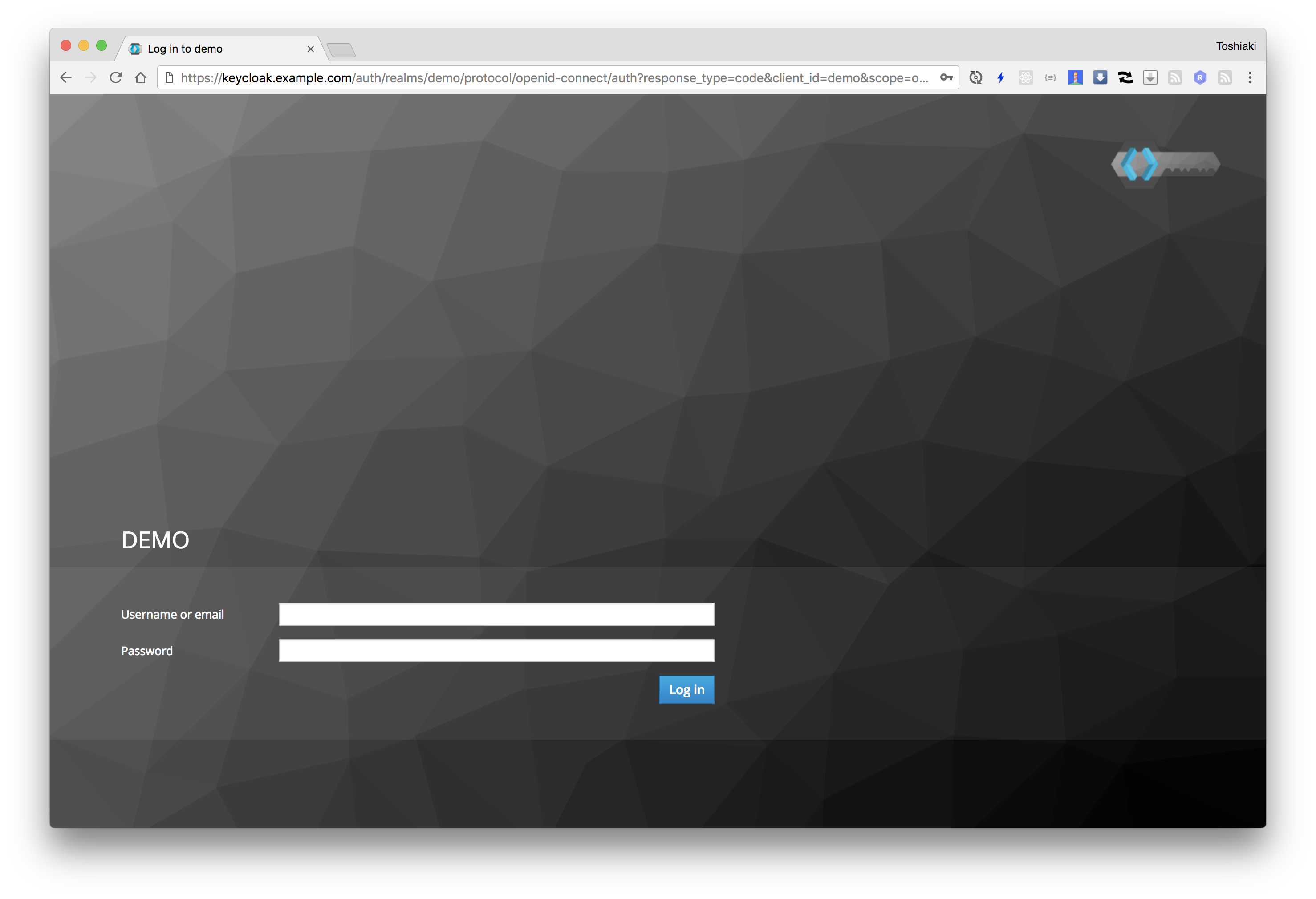 "Keycloak"をクリックすると、Keycloakのログイン画面にリダイレクトされます。