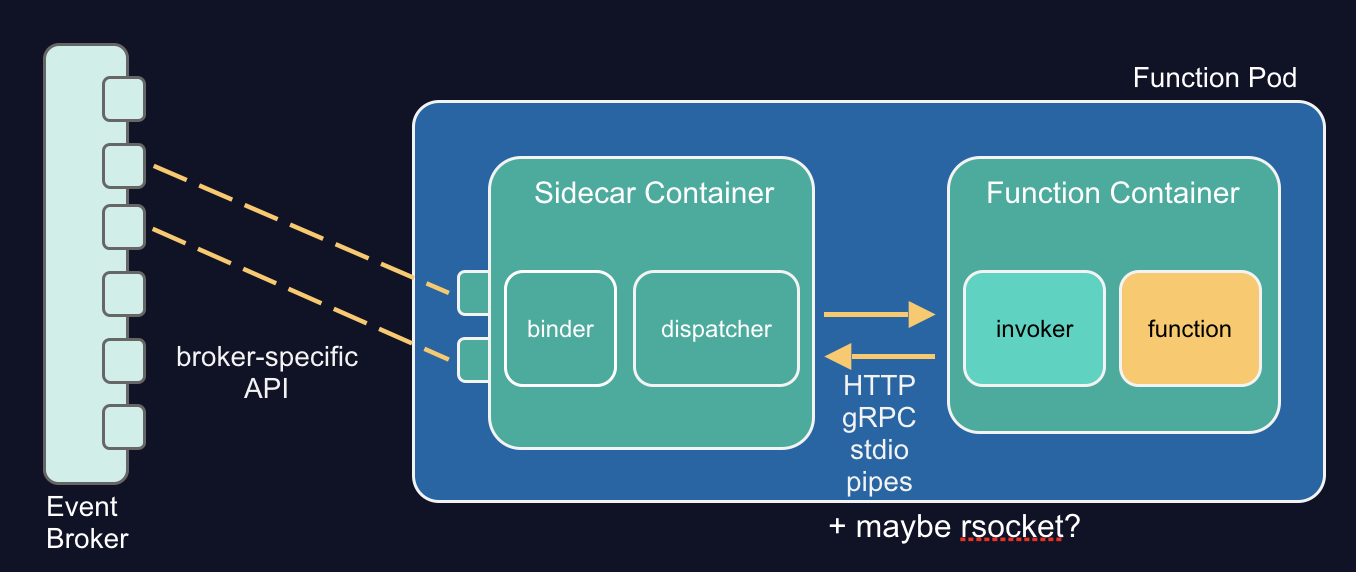 作成され、Podができます。Podはサイドカーを持ち、関数を実行するためのいくつかのプロトコルをサポートします。現時点では
